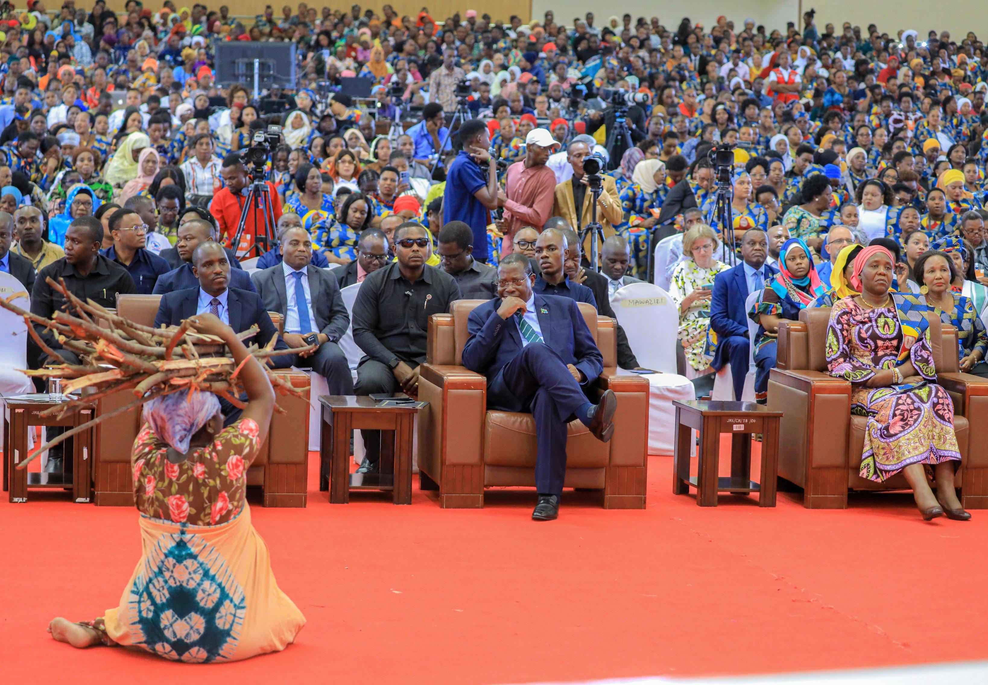 At the Jakaya Kikwete Conference Hall in Dodoma Region, after a special drama on gender violence and cutting down trees for cooking.